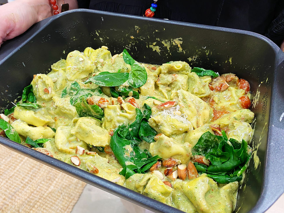 Tortellonia, pinaattia ja tahinia